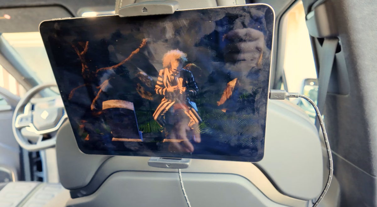 This media mount is a game-changer for passenger entertainment. No more holding tablets for long journeys! It’s sturdy, adjustable, and seamlessly integrates with the R1T’s interior.