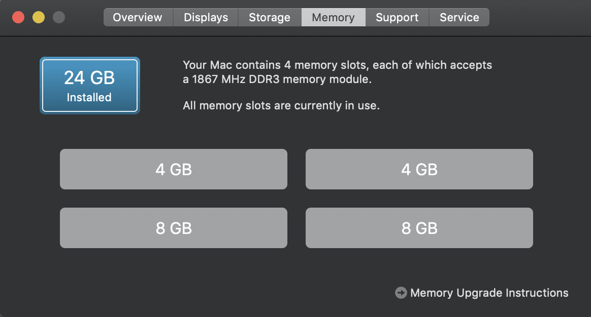Back in 2017 I purchased a refurbished late 2015 iMac MK482LL. It’s still going on strong for what I use it for – mainly development. It came with a 27″ screen, 2TB Fusion drive, and an Intel i5 3.3GHz quad-core CPU. The Fusion drive truly makes a difference and the 2TB model has a larger 128GB Flash component over the 1TB version which only has 24GB. It’s not as fast as a SSD hard drive but better than HDD. There isn’t much you can upgrade. Ram is probably the most accessible part that can be upgraded. So I did.