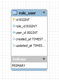 Remember, we don’t have foreign keys on either table. We will now create a pivot table. Following naming conventions, it will be called role_user.